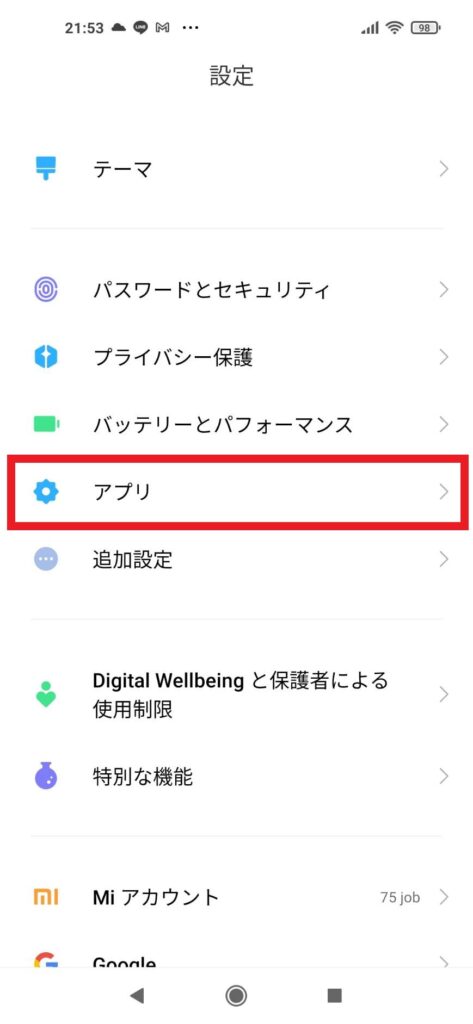 2.「アプリ」をタップ