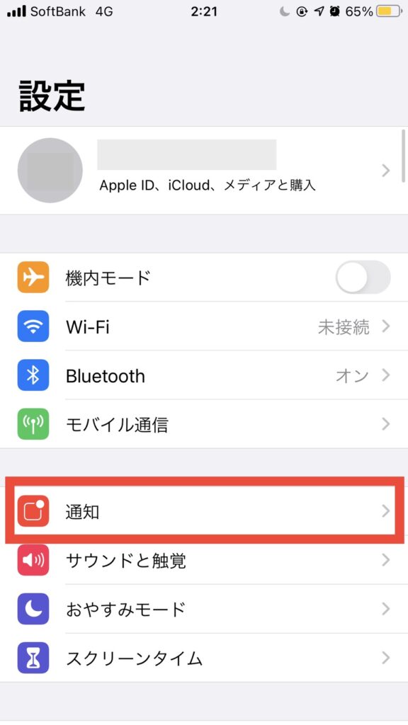 5.「通知」をタップ