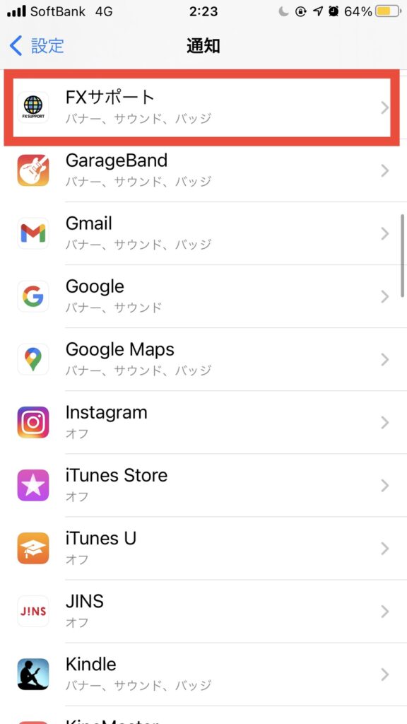 4.「FXサポート」をタップ